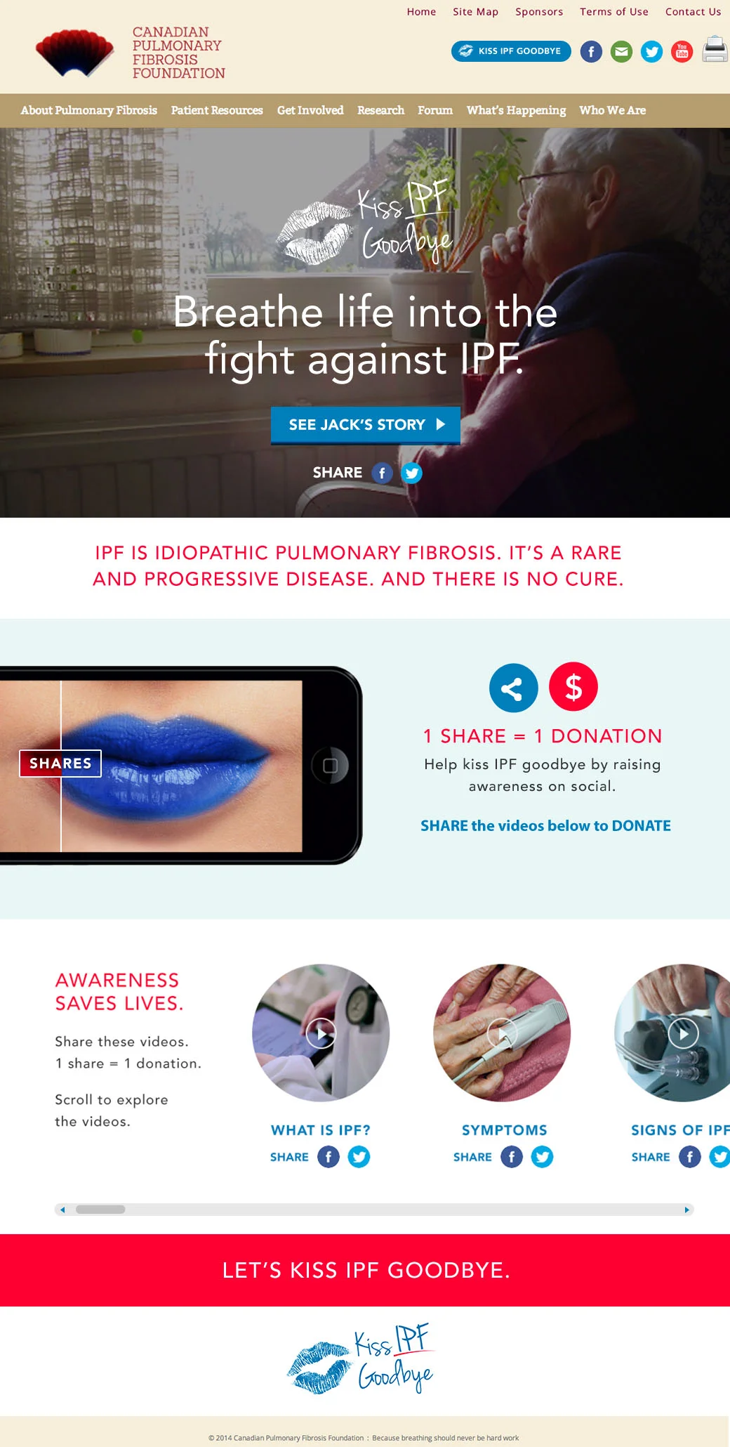 Idiopathic Pulmonary Fibrosis (IPF) is a progressive and fatal lung disease, and there is no cure. In advance of the release of a new treatment option, Boehringer Ingelheim (Canada) Ltd. and the Canadian Pulmonary Fibrosis Foundation wanted to launch the first-ever unbranded IPF awareness campaign in Canada.